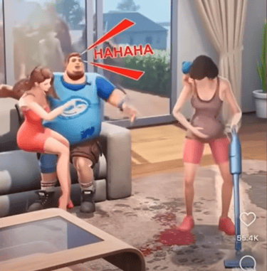 To put it simply, a man is sitting on the couch CHEATING ON HIS PREGNANT WIFE IN FRONT OF HER; the guy throws juice at the floor so she could start cleaning, which she did somberly, and guess what? He starts laughing at her. While this is happening, a group of 1000 ZOMBIES IS WAITING OUTSIDE THEIR HOUSE!
